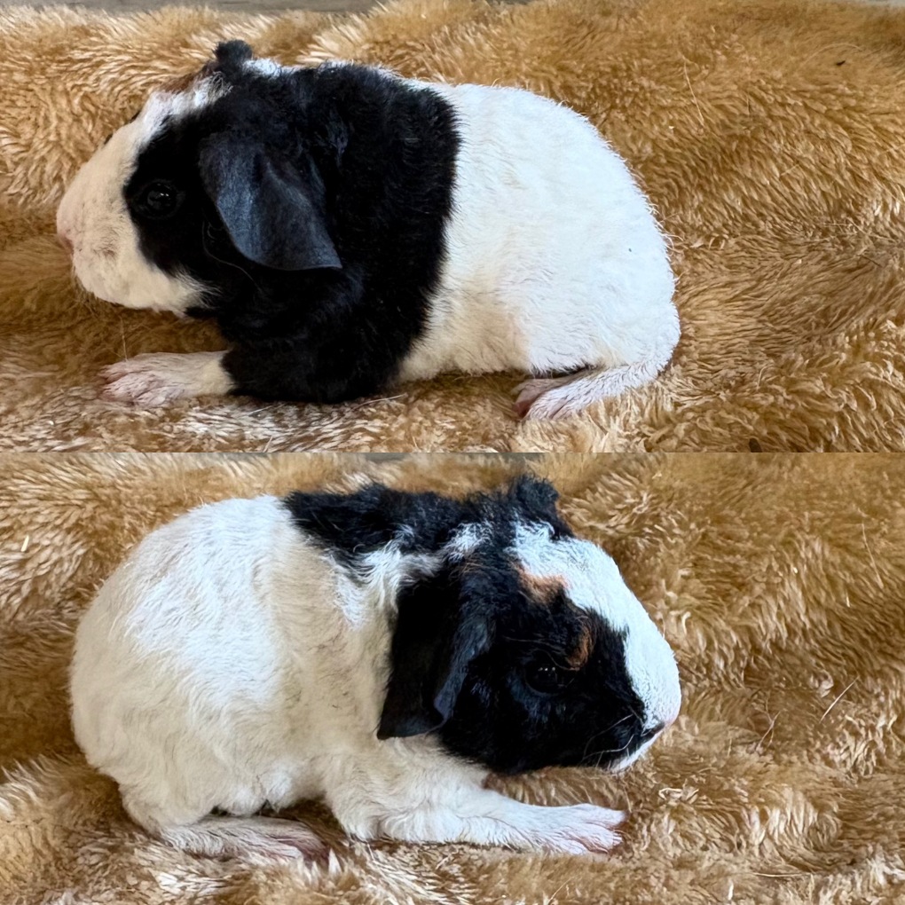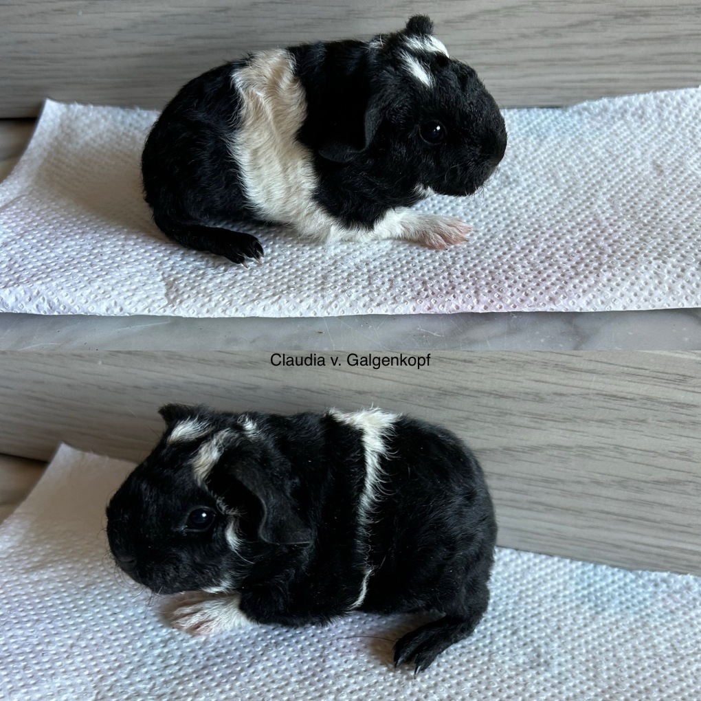 ![]() | Sunshine v. Galgenkopf US-Teddy Schwarz-Weiß mit ein paar roten Haaren rund um´s rechte Auge Geb. 20.03.26 Vater: Uno v.d. Villa Nagerbunt, US-Teddy Schoko-Gold-Weiß Mutter: Donata v. Galgenkopf, GH Schwarz-Rot-Weiß - FREI - 50€ - Sie kann ab Ende April zusammen mit einem kastrierten Bock ausziehen |