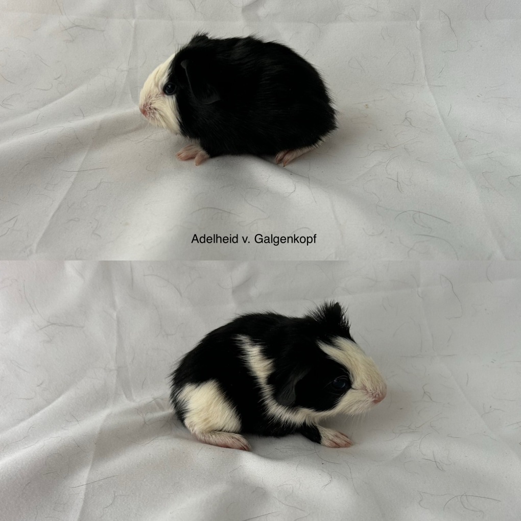 ![]() | Adelheid vom Galgenkopf GH Schwarz-Weiß Schoko-Träger Geb. 05.06.2025 Vater: Bogdan v. Lapautal, US-Teddy Schwarz-Weiß Mutter: Rosa v. Bøgebo, GH Schoko-Buff-Weiß - in Aufzucht - |